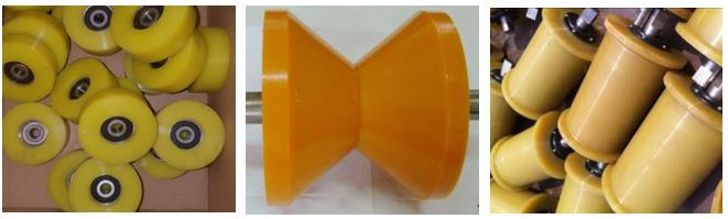 聚氨酯弹性体胶轮广泛用于实心轮、托绳轮、压绳轮、滑轮、摩擦轮、单轨运输车、齿轨车、重型物流搬运车、游乐场所的高速滑行车、过山车、缆车、电梯轮等等。对于荷载重、坡度大、强冲击等苛刻条件下使用的胶轮,采用聚氨酯弹性体尤其适宜。