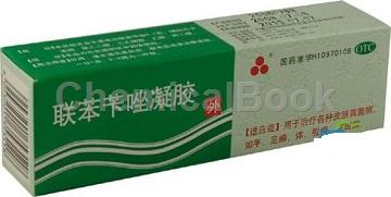 联苄唑乳膏为乳白色或微黄色乳膏,每克含主要成分联苄唑10毫克,辅料为硬脂酸、单硬脂酸甘油酯、液状石蜡、十八醇、司盘60、甘油、乳化硅油、十二烷基磷酸酯钾盐、纯化水。其为广谱抗真菌类药物,其剂型有乳膏剂、凝胶剂、栓剂等。用于治疗浅表皮肤真菌感染,如:手足癣,体、股癣,花斑癣,皮肤念珠菌病等。