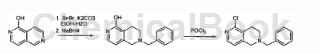 在圆底烧瓶中加入6-苄基-5,6,7,8-四氢-2,6-萘啶-1-醇(7克,29毫摩尔)和磷酰氯{leonidchemicals,india;加入80ml)并加热至回流16个小时通过tlc监测反应进程。反应完成后,蒸馏pocl3并用冰冷的水淬灭残余物,然后用二氯甲烷(3×100ml)萃取。合并的有机层用无水钠干燥,减压除去溶剂。通过柱色谱法纯化残余物(甲醇/二氯甲烷,5:95),得到所需产物2-甲基-5-氯-1,2,3,4-四氢-[2,6]二氮杂萘(收率80%)。