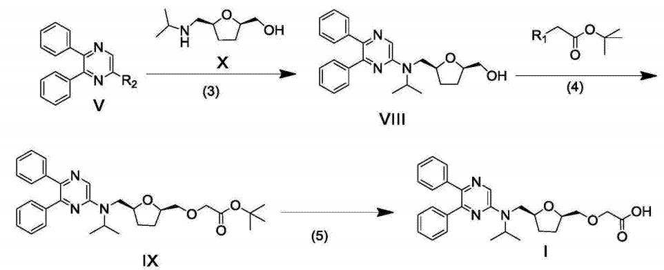 5,6-二基-2-羟基吡嗪是一种医药中间体,可由联甲酰与氨基乙酰胺盐酸盐一步制备得到。有文献报道5,6-二基-2-羟基吡嗪可用于制备ip受体激动剂(化合物i)。ip受体激动剂可以治疗的疾病主要有肺动脉高压(pah),与各种病相关的pah、动脉硬化闭塞症、冠状动脉病、心肌梗塞、短暂性缺血发作、绞痛、中风、缺血再灌注损伤、再狭窄、心房纤维性颤动、间歇性跛行、雷诺现象、静脉曲张、血栓症、糖尿病、糖尿病性肾病、高血压、高血脂、脑梗塞、类风湿性关节炎、慢性阻塞性肺疾病(copd)等。