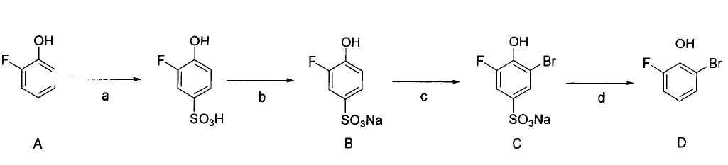 2-溴-6-氟酚又叫2-氟-6-溴酚,可用作医药合成中间体。以2-氟酚为原料,经过磺化、卤化、脱保护、可得到中间体2-氟-6-卤代酚