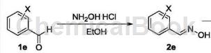 具体步骤如下:称取28.10g(0.20mol)原料1e(邻氯甲醛)于500ml的单口烧瓶中,向其中加入200ml的无水乙醇,然后将20.85g(0.30mol)的盐酸羟胺溶于70ml的水中,用碳酸钠中和后慢慢滴加到反应瓶中,滴加完毕后,回流搅拌反应2h后,tlc跟踪反应进程,待原料完全反应后,将反应液倒入水中,析出大量白色固体,过滤水洗烘干后得产品2e为29.73g,收率95.6%。产品邻氯甲醛肟的m.p.75~77℃,核磁数据为:1hnmr(600mhz,cdcl3/tms)δ:7.35~7.43(m,2h,ar-h),7.50(d,1h,j=8.0hz,ar-h),7.81(d,1h,j=8.0hz,ar-h),8.36(s,1h,ch=n),11.63(s,1h,oh)。