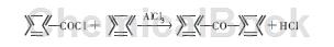 ⑸ 缩合反应:甲酰氯加入三氯化铝与等摩尔芳烃类作用,可产生缩合反应,生成二基酮。