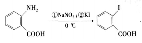 国内外文献所记载的合成邻碘甲酸及其衍生物的方法是以邻氨基甲酸为原料,通过重氮化和碘代两步反应得到产品。