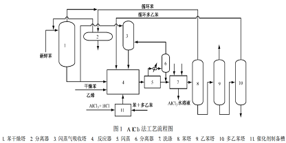 乙烯的转化率接近100% , 乙的收率较高, 循环和乙的量较小; 与乙烯的烷基化反应和多乙的烷基转移反应可在同一台反应器中完成。 缺点是反应介质的腐蚀性强, 设备造价与维修费用高以及反应产物有机相经水洗、 碱洗后产生大量含有氢氧化铝淤浆的废水, 加上废催化剂, 造成了严重的环境污染。