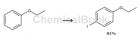 4-碘又名对乙氧基碘,4-甲氧基碘。碘代芳烃是重要的化工中间体,在有机合成中有着广泛应用,在过渡金属催化作用下,可以发生heck、stille、suzuki、ullmann偶联反应,形成c-c和c-杂原子键,进而合成多种多样的有机化合物。
