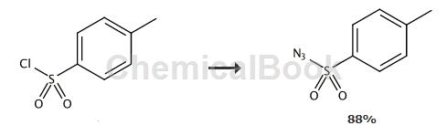室温下,在500ml烧瓶中依次加入13.8g对磺酰氯(73mmol),50ml水和5.7g叠氮化钠(87mmol),搅拌反应2小时,用tlc法监测反应至反应完全后,50ml二氯甲烷萃取3次,合并有机相,无水钠干燥,浓缩即得对磺酰叠氮产品12.7克,收率88%。