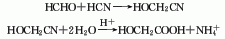 4.氰化钠法以甲醛、氰化钠为原料,经加氰和酸性水解两步制得。