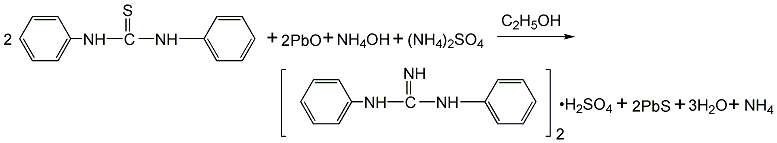 1.我国二胍生产工艺均为二硫化碳和胺缩合制得二硫脲,再由二硫脲、氧化铅、氢氧化铵与铵在40-70℃的条件下制成二胍的盐,经提取、过滤,中和得半成品。再经干燥、筛选即得成品促进剂d。各生产工艺的不同点主要集中在二硫脲合成二胍这一步,早期国内采用氧化铅法,由于产品质量差、操作人员的粉尘污染(铅粉尘)、母液的三废处理、收率低等问题,此方法在20世纪90年代后期基本已停止使用。此法用氧化铅作脱硫剂,用氨水作胺化剂,用铵作为二胍的萃取剂,在原料消耗、环境保护方面都存在问题。