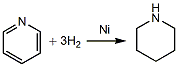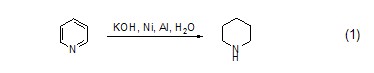 由吡啶制备六氢吡啶 在氢氧化钾的水溶液中,吡啶与镍铝合金反应生成六氢吡啶(式1)[1]。