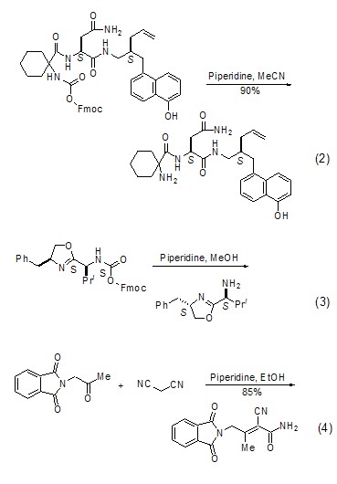 酮与氰基化合物反应生成不饱和酰胺 在六氢吡啶存在下,酮类化合物与氰基化合物反应,生成不饱和酰胺 (式4)[4]。