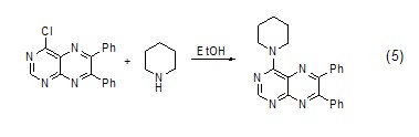 六氢吡啶与卤化芳香化合物的偶合反应 在乙醇溶液中,六氢吡啶与卤化芳香化合物可发生碳-氮键偶合反应 (式5)[5]。