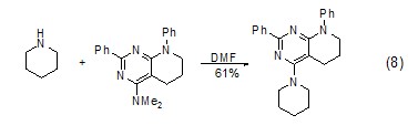 六氢吡啶与三级胺的反应 在dmf为溶剂的条件下,六氢吡啶可以与三级胺发生反应 (式8)[8]。