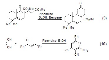 用于robinson环缩合反应以及michael加成反应 六氢吡啶还广泛地用于robinson环缩合反应以及michael加成反应 (式9,式10)[9,10]。
