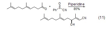 六氢吡啶的亲硫性质 在knoevenagel亚砜-亚磺酸重排反应中,六氢吡啶不但起到催化剂作用,而且还能切割s-o键 (式11)[11]。