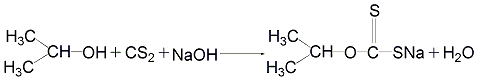 异丙基黄原酸钠与过钾经氧化反应生成二硫化二异丙基黄原酸酯,经软水洗涤、真空干燥而得成品。1t产品消耗异丙基黄原酸钠(干品,≥84%)1192kg,过钾(99.5%)1123kg。