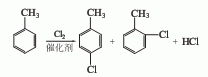 经食盐干燥脱水的经计量槽计量后进入氯化反应器,计量后的氯气由反应器的底部通入,与氯气在一定温度下,以三氯化铁为催化剂进行环氯化,生成一氯氯化液,该氯化液用氮气赶去余气和氯化氢,再进行粗蒸,得到对氯和邻氯的混合物,其对、邻比随着催化剂和反应条件不同而不同,一般对、邻比为55∶45。