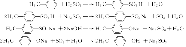 磺化法制备对甲酚是早的工业化方法,此法工艺较成熟,但需消耗大量的酸、碱,设备腐蚀问题大,目前该法还是生产对甲酚的主要方法。