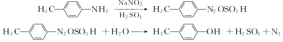 对胺和生成对胺盐,在0~5℃用亚硝酸钠进行重氮化,然后将重氮盐在稀中加热水解,用蒸汽将油状物分出,将油层分出加到1%氢氧化钠中,再加脱色过滤,加入浓至ph=1,然后将水层分出,加入锌粉和,再用碳酸钠中和至中性,分出油状物,水洗,然后减压蒸馏得成品。