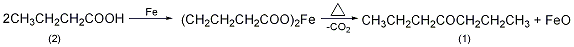 参照上述3-戊酮的制备方法(参考书335),用正丁酸(2)880g(10mol)进行反应,得到4-庚酮(1)285g,bp142~143℃,收率46%。[1]