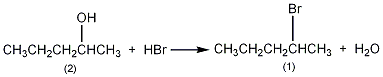 用210g(48%)的氢溴酸,60g浓,2-戊醇(2)88g(1.0mol),和浓10g,参照1-溴丙烷的制备方法,用分馏柱蒸出生成物,收集115~118℃的馏分,得2-溴戊烷(1)120g,收率79%。[1]