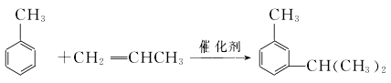 烷基化以三氯化铝为催化剂(用量为1%~2%),反应温度85~115℃,丙烯/=0.4~0.6(mol),在此条件下可以获得收率较高的间位异构体。