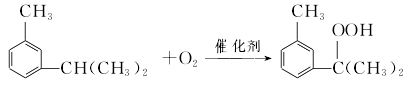 异丙基氧化所用氧化剂有空气、纯氧和过氧化氢。一般以空气氧化比较经济。氧化反应在引发剂(过氧化甲酰或偶氮二异丁腈)存在下进行,加入量为异丙基质量的1%左右,反应温度138~140℃,反应时间130~150min,通气量按理论过量5%;反应液ph值控制在5左右,氧化深度控制15%,在此条件下总的异丙基氢过氧化物收率约为85%~90%。