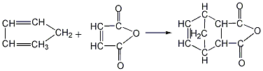 (1)将顺丁烯二酸酐、环戊二烯及溶剂加入反应釜,搅拌溶解进行第尔斯阿尔德(dielsalder)反应,反应温度为20~60℃,反应产物内次甲基四氢邻二甲酸酐收率可达100%。反应结束加热将溶剂蒸出回收循环使用,粗酐可由升华而精制,即得成品。