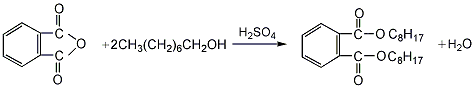 1.由酐与正辛醇在常压下酯化生产将酐、正辛醇、、加入反应釜,搅拌下慢慢加热升温,至及水开始蒸出。水混合气经冷凝器冷凝后,由水分离器分出水分,回流至釜内继续蒸发带水。当没有水带出时,酯化反应完成,然后回收,冷却、碱洗、水洗、干燥、减压蒸馏,即得成品。
