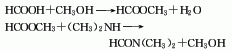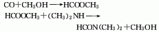 3、由一氧化碳和甲醇在高压和80-100℃温度下经羰基合成得甲酸甲酯,然后再与二甲胺反应生成二甲基甲酰胺,精馏后得到成品。
