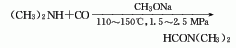 2、二甲胺-一氧化碳法:由二甲胺与一氧化碳在甲醇钠作用下,直接反应而得。反应条件是1.5-2.5mpa和110-150℃。粗品经精馏制得成品。