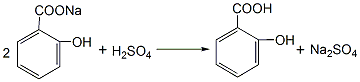 量活性炭,煮沸,趁热过滤,滤液冷却重复用蒸馏水溶解,过滤、甩干数次,即可得纯品水杨酸。所得水杨酸粗品也可用减压升华精制。过程反应式为: