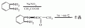 1.由邻三胺与亚硝酸钠反应而得。将邻二胺加入50℃水中溶解,再加入冰醋酸,降温至5℃,加入亚硝酸钠搅拌反应。反应物渐渐变成暗绿色,温度升至70-80℃,溶液变为桔红色,于室温放置2h,冷却,滤出结晶,用冰水洗涤,干燥得粗品,将粗品减压蒸馏,收集201-204℃(2.0kpa)的馏分,再用重结晶,可得熔点为96-97℃的产品,产率80%左右。曾有报道用亚硝酸钠处理多菌灵的缩合废水而得副产物并三氮唑。
